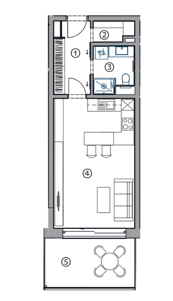 04Obývací pokoj + kuchyně23,3 m²
