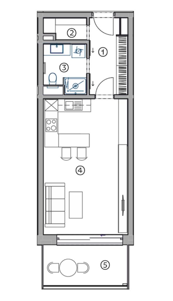 04Obývací pokoj + kuchyně23,3 m²