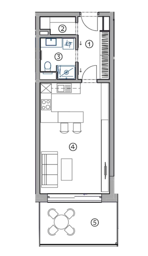 04Obývací pokoj + kuchyně23,3 m²